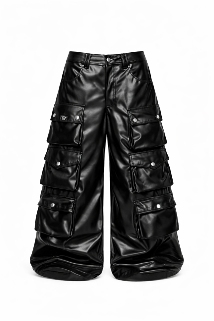Calça Super Cargo de Couro Unissex 12 Bolsos Preta